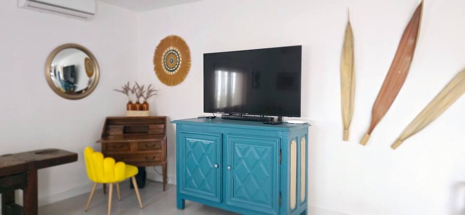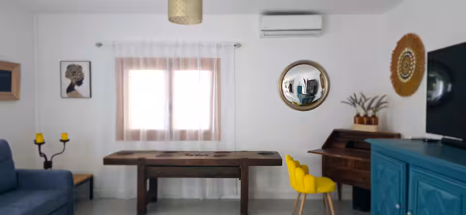 El espacioso interior de la finca, recientemente renovado, está decorado con buen gusto y completamente equipado, ofreciendo todas las comodidades para unas vacaciones inolvidables. La casa de vacaciones tiene una superficie de 90 m², que incluye un salón con sofá-cama, cocina americana totalmente equipada, un dormitorio con cama de matrimonio y dos camas individuales, otro dormitorio con cama de matrimonio, un aseo independiente y un baño con ducha a ras de suelo.