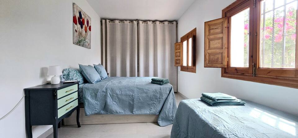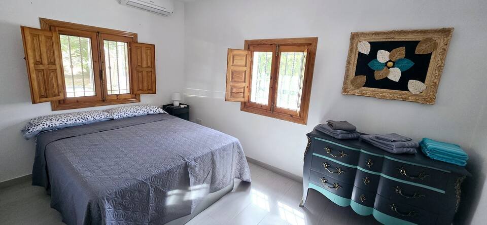 Finca La Dorada es una tranquila casa independiente situada en las colinas sobre Motril, a solo 5 km de las playas de la Costa Tropical. Este alquiler vacacional en Motril es perfecto para unas vacaciones relajantes en pareja, con amigos o en familia. Disfrute de magníficas vistas al mar, un jardín exuberante, dos terrazas cubiertas para momentos de relax, barbacoa, tumbonas y hamaca, ideales para disfrutar del clima y la naturaleza.